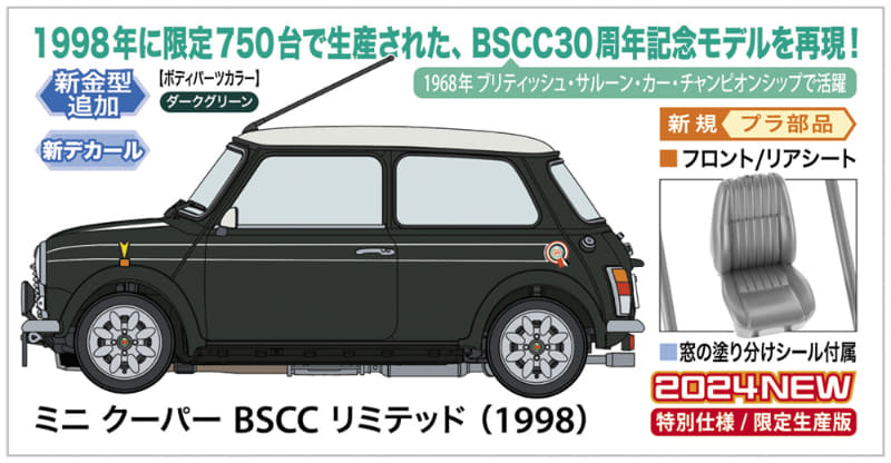 ハセガワ、プラモデル「ミニ クーパー BSCC リミテッド (1998)」完成見本を公開(8/8)