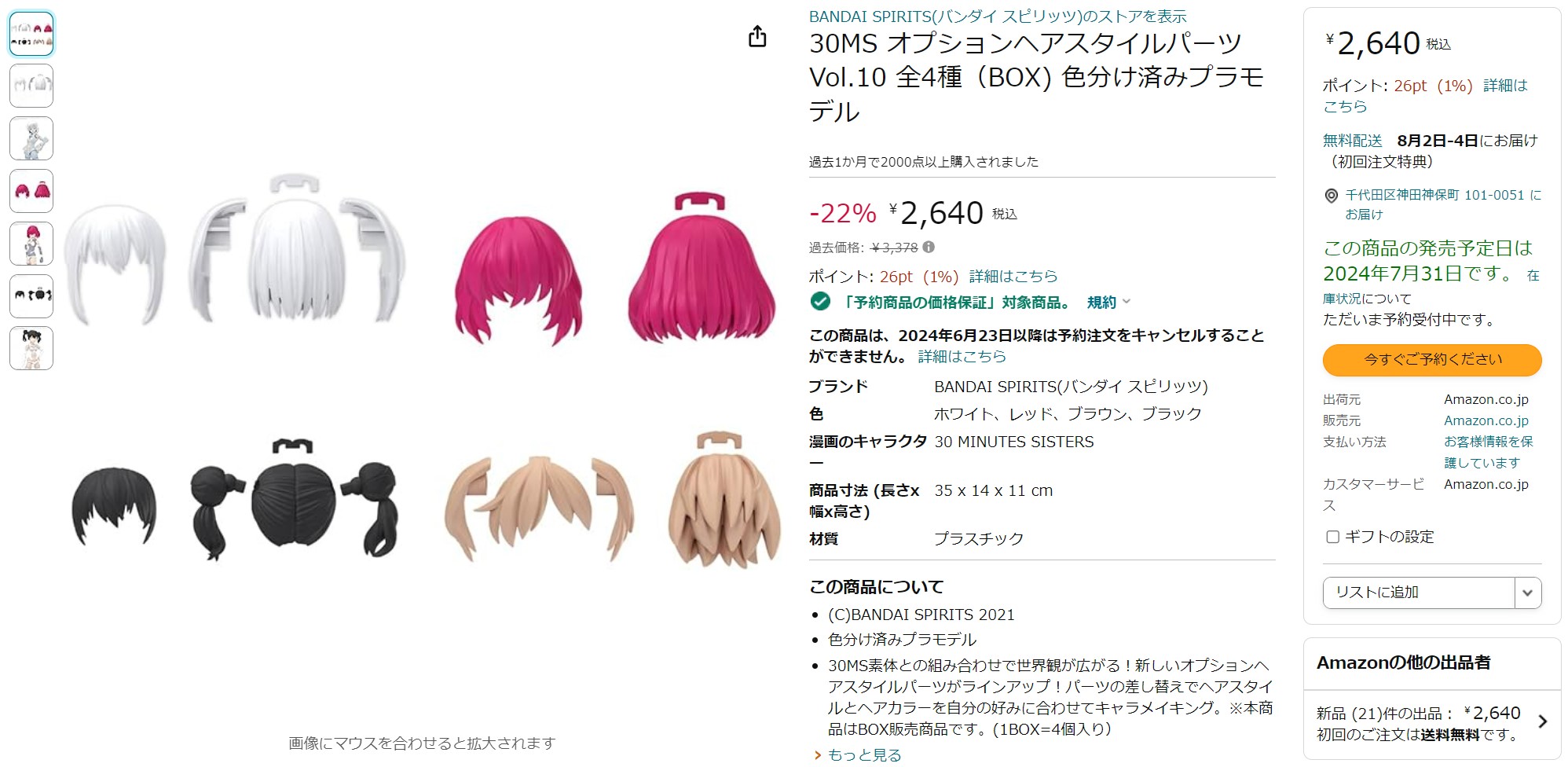 • 30MS オプションヘアスタイルパーツVol.10 全4種(BOX) 色分け済みプラモデル