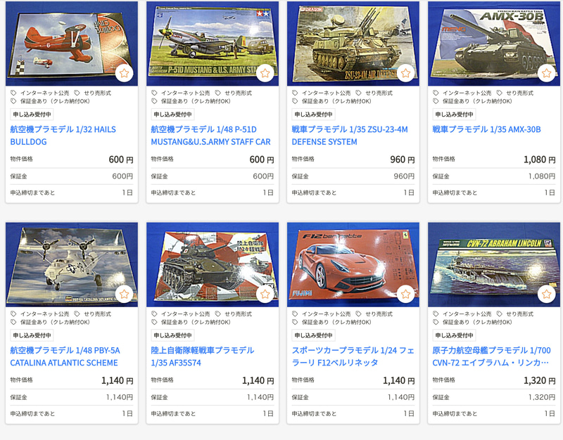 官公庁オークションにスケールプラモデルやポケカ、電動ガンなどが出品中