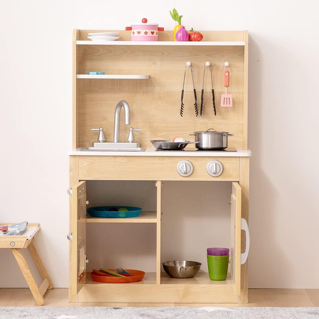 • アイリスプラザ おままごとキッチン 木製 誕生日 台所 おもちゃ収納 食材 知育玩具 コンロ ミニキッチン おもちゃキッチン ナチュラル OMCK-892