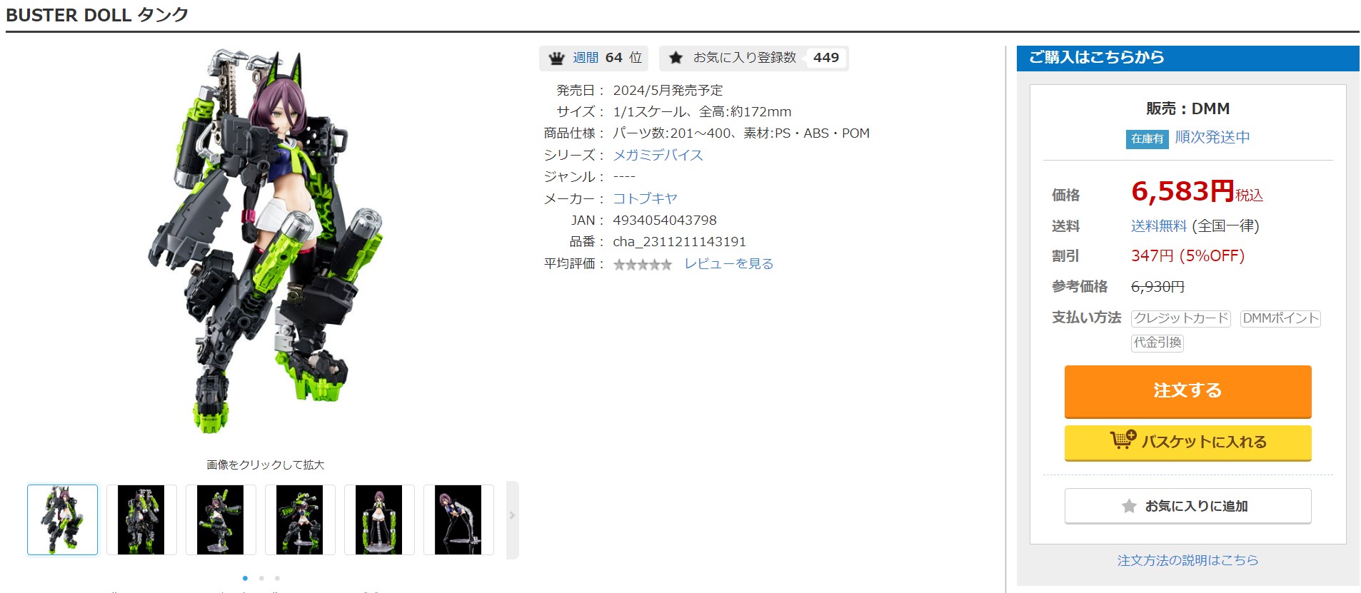 (C) KOTOBUKIYA (C)Masaki Apsy (C)Toriwo Toriyama BUSTER DOLL タンク【再販】BUSTER DOLL ガンナー Amazon/楽天/DMMで購入壽屋(KOTOBUKIYA) メガミデバイス BUSTER DOLL タンク 全高約172mm 1/1スケール プラモデルAmazonで購入楽天で購入DMM.comで購入 【あみあみで購入】