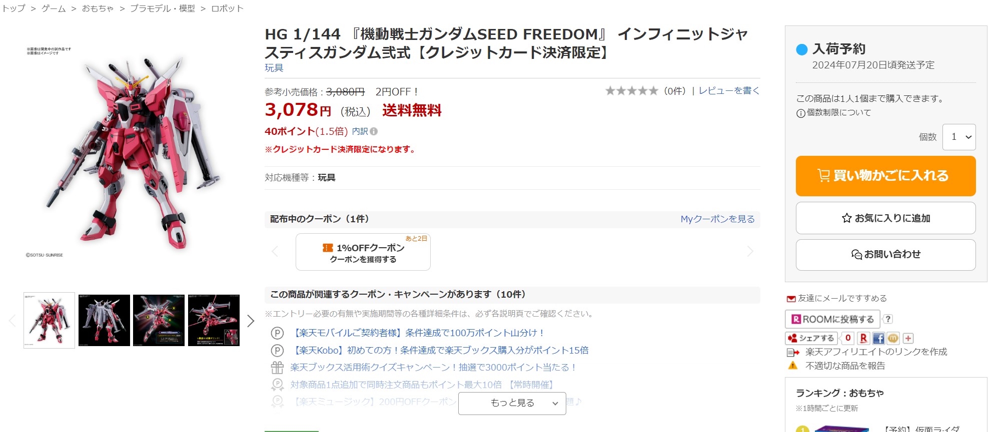 (C)創通・サンライズ HG 1/144 『機動戦士ガンダムSEED FREEDOM』 インフィニットジャスティスガンダム弐式楽天で購入HGAC 1/144 『新機動戦記ガンダムW』 XXXG-00W0 ウイングガンダムゼロ楽天で購入HGUC 1/144 『機動戦士ガンダム0080 ポケットの中の戦争』 RX-78NT-1 ガンダム (アレックス)楽天で購入