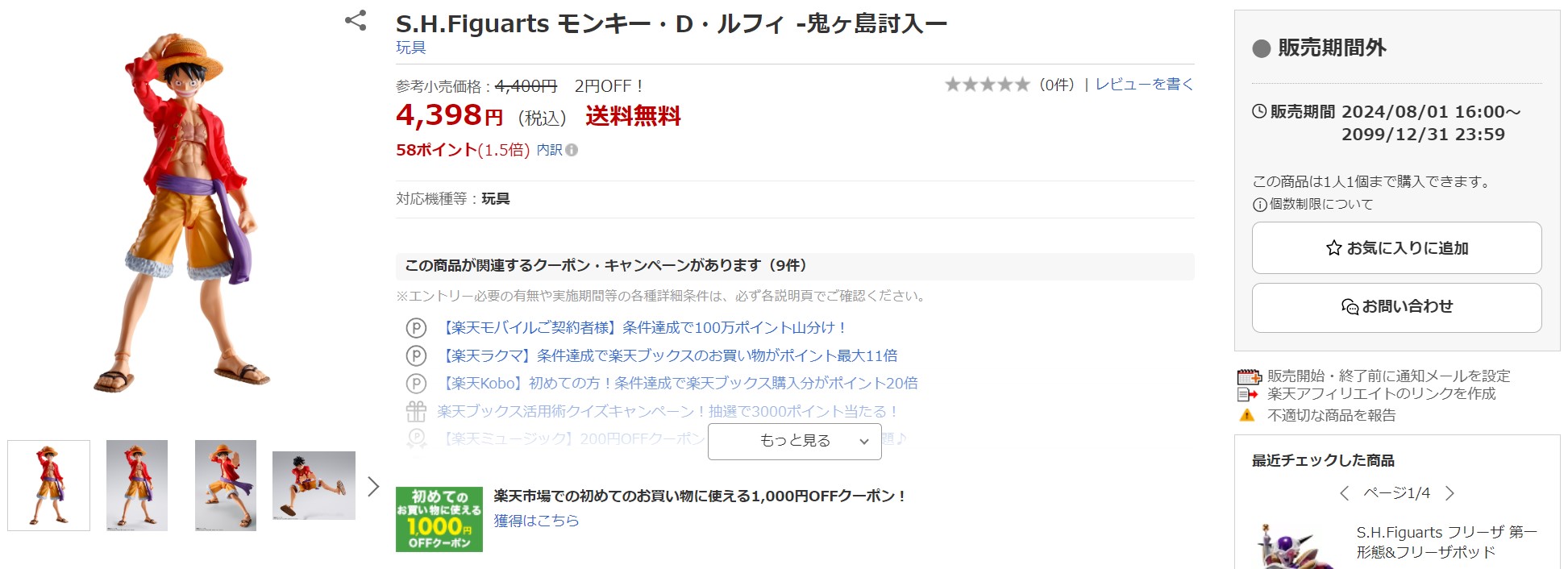 楽天ブックスにてBANDAI SPIRITSの可動フィギュア6製品の再販品が8月1日16時より予約開始!(8/12)