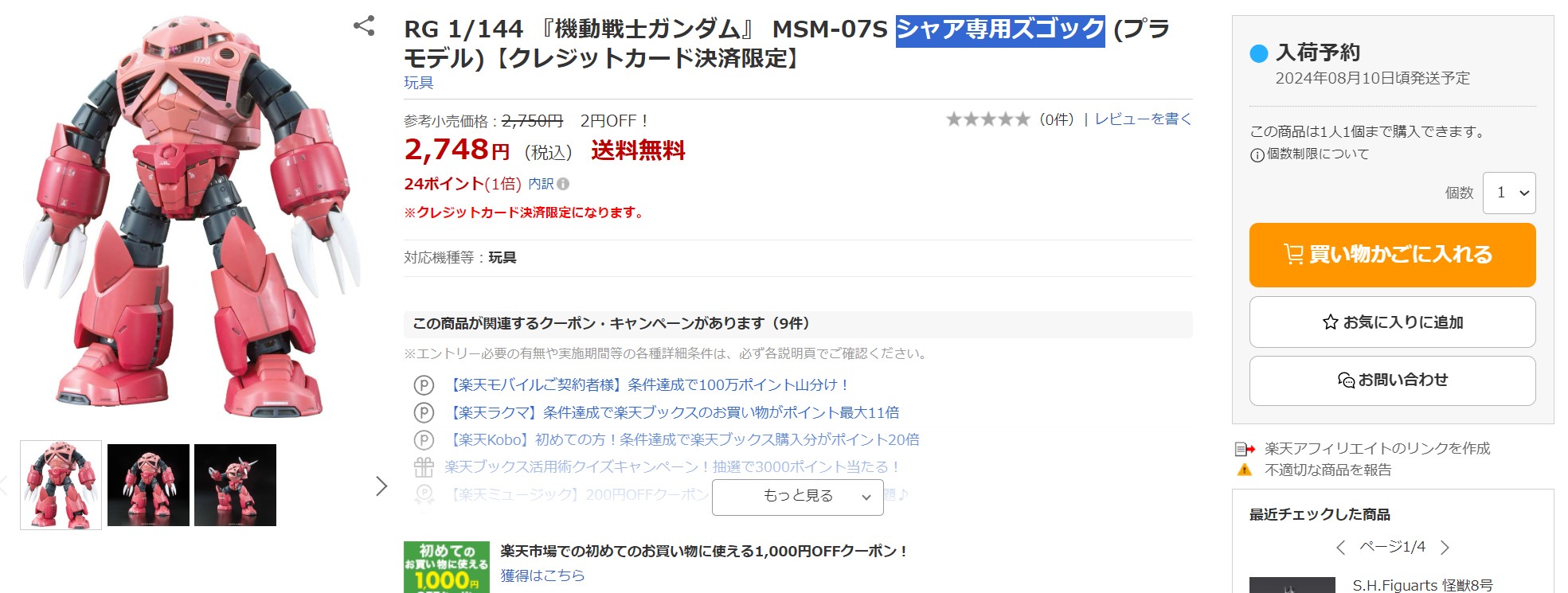 楽天ブックスにてプラモ「HG VF-19改 ファイヤーバルキリー」や「RG シャア専用ズゴック」など3製品が販売再開!(5/6)