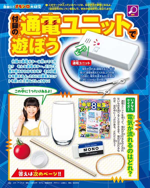7月31日発売の「『小学8年生』キミだけの自由研究号」の付録に「科学実験付録 通電ギター」が登場(3/7)