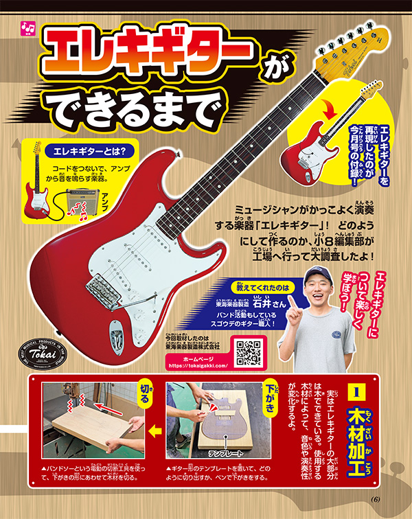7月31日発売の「『小学8年生』キミだけの自由研究号」の付録に「科学実験付録 通電ギター」が登場(4/7)