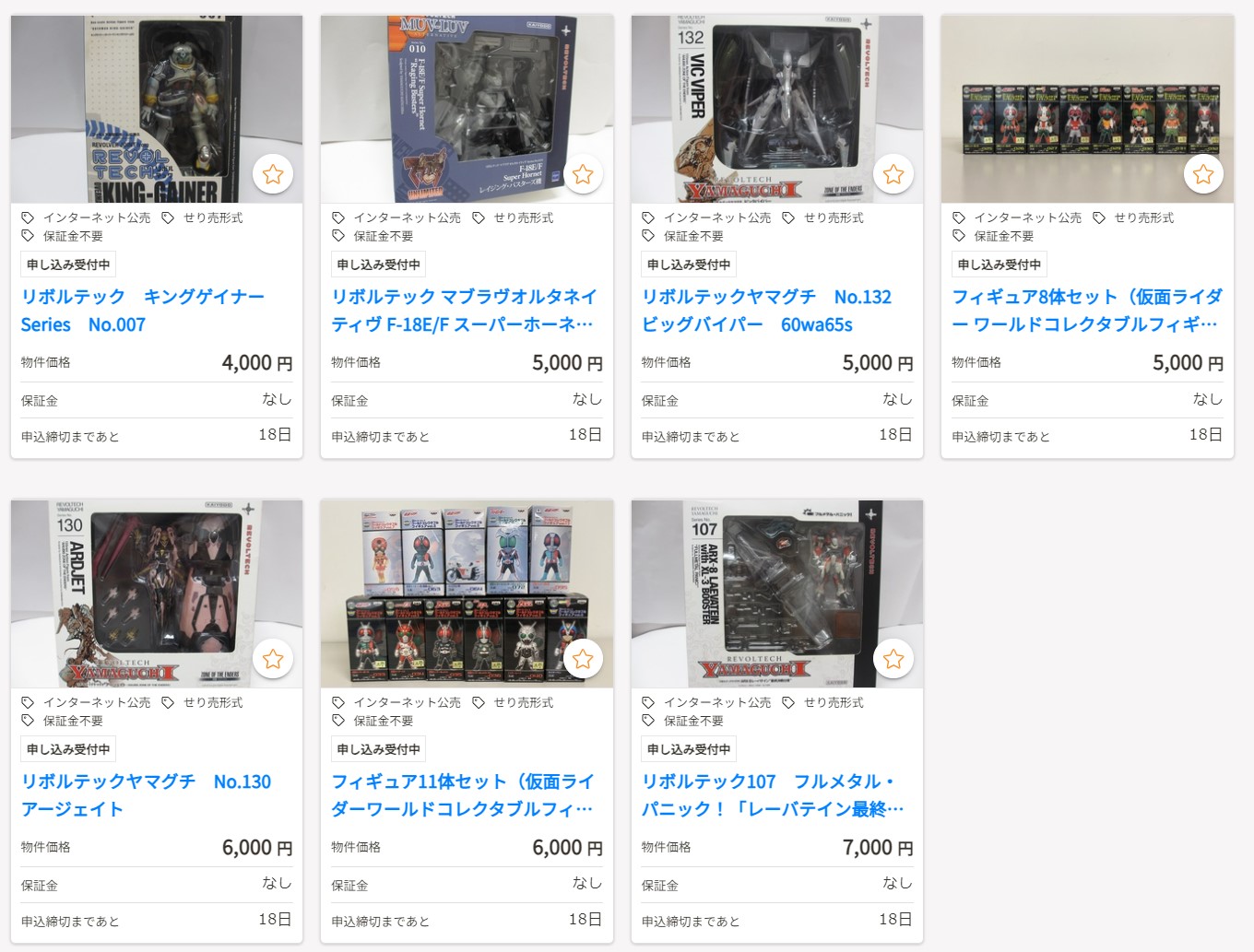 官公庁オークションにプラモデルやフィギュアなどが出品中