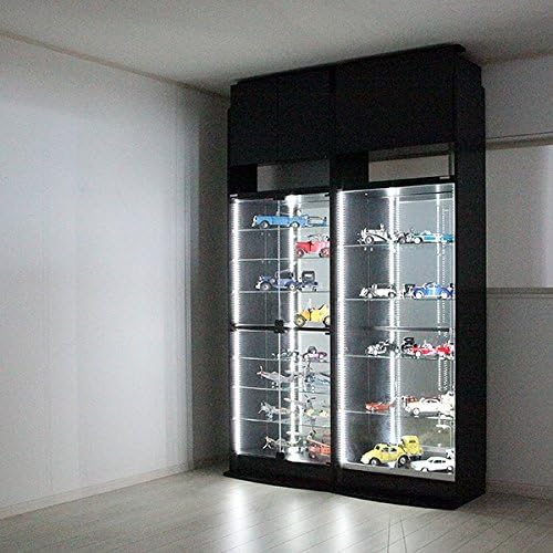 • (JAJAN)[ 鍵付きコレクションケース ]フィギュアラック サード ワイド フルカラーRGB LED付き 本体 扉 幅83cm 奥行39cm ハイタイプ ブラック【正規品】[LED付き 照明付フィギュアケース コレクションラック ]