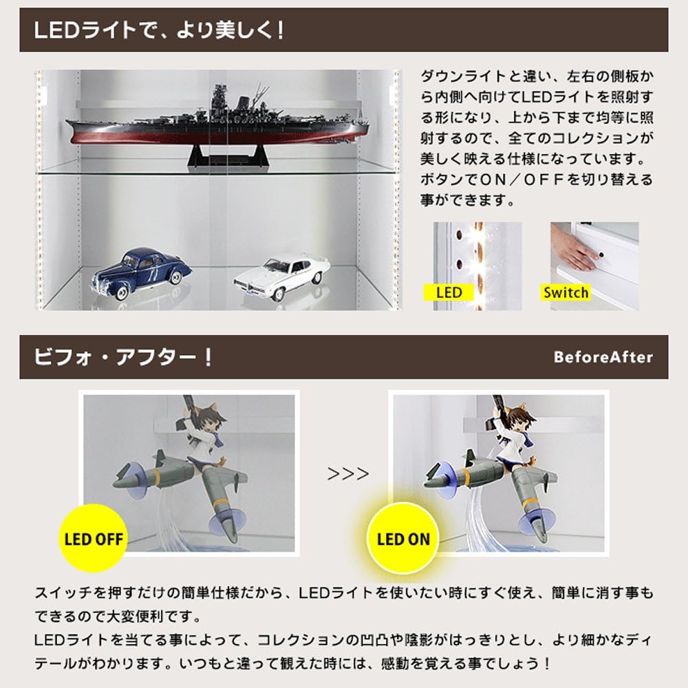 • (JAJAN)[ 鍵付きコレクションケース ]フィギュアラック サード ワイド ピュアホワイトLED付き 本体 扉 幅83cm 奥行29cm ハイタイプ ホワイト【正規品】[LED付き 照明付フィギュアケース コレクションラック ]