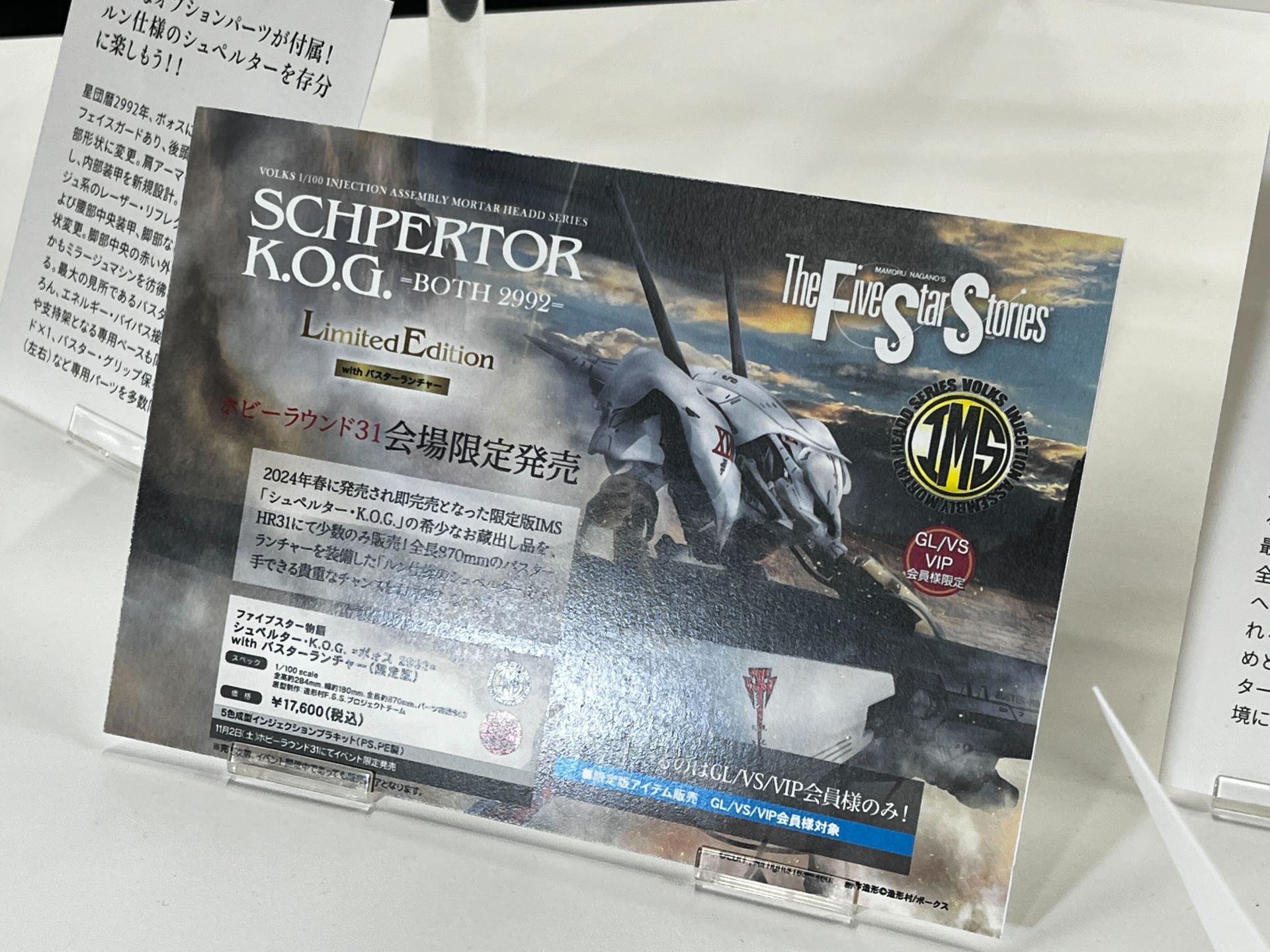 「ファイブスター物語」より「IMS シュペルター・K.O.G. =ボォス 2992= with ベイル(仮)」の塗装見本が展示!(4/30)