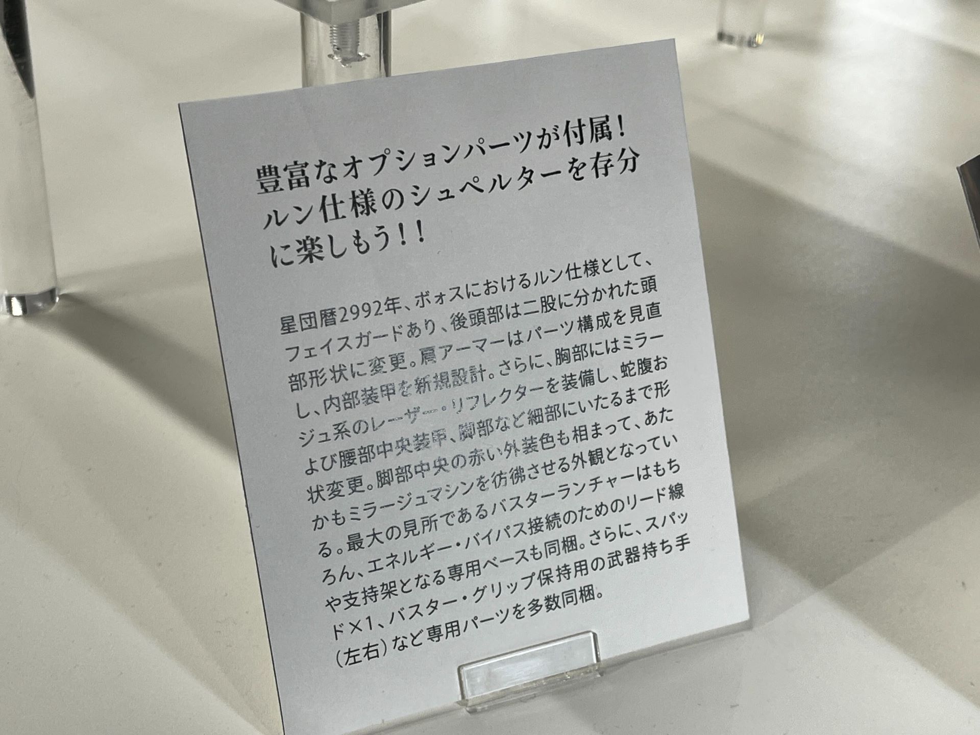 「ファイブスター物語」より「IMS シュペルター・K.O.G. =ボォス 2992= with ベイル(仮)」の塗装見本が展示!(5/30)
