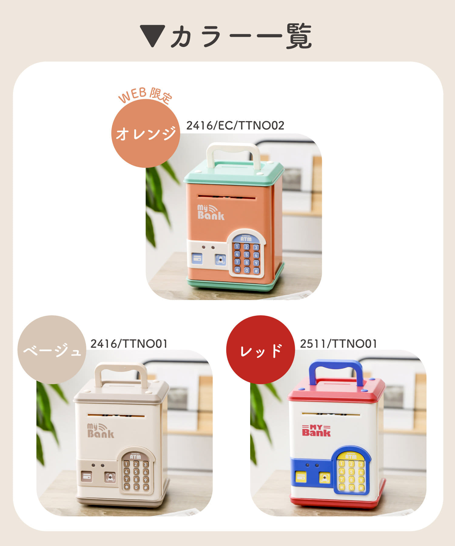 3COINSの「電子貯金箱」に赤、青、白を組み合わせたポップなカラーリングが新登場!(4/17)