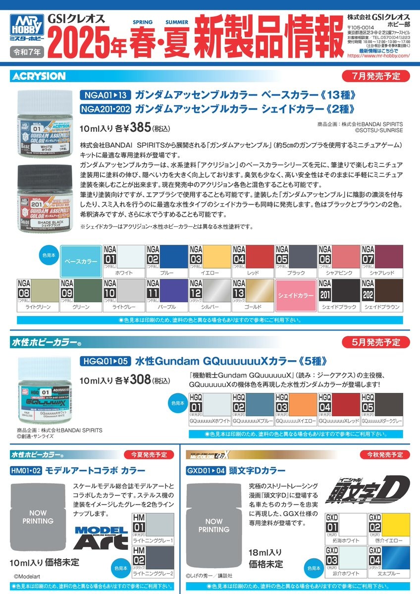 水溶系アクリル樹脂塗料「水性Gundam GQuuuuuuX カラー」が5月下旬に出荷予定