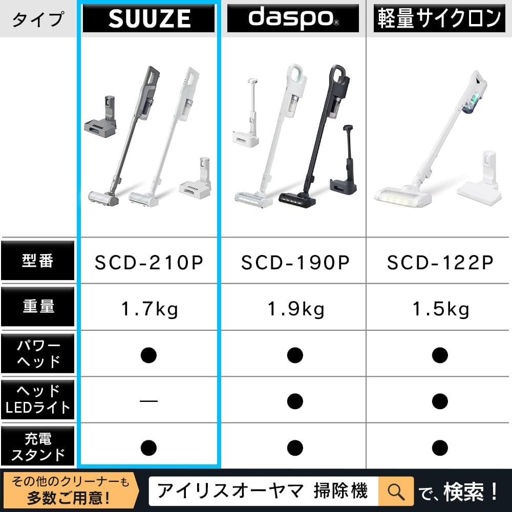 • 【当社最強の吸引力】 アイリスオーヤマ(IRIS OHYAMA) 掃除機 コードレス スティッククリーナー 充電式 サイクロン 置くだけ充電スタンド 静電モップ カーペット掃除 最長43分運転 SUUZE SCD-210P-W ホワイト