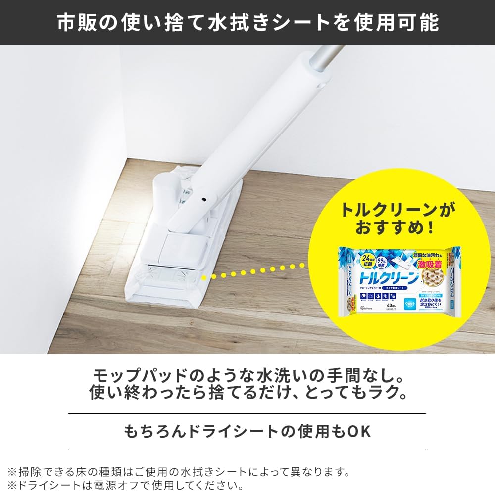 • 【振動回数毎分1000回】 アイリスオーヤマ(IRIS OHYAMA) 電動モップ モップクリーナー 電動フロアワイパー フロアワイパー 電動式 水拭き 乾拭き ミニ ハンディ SWD-1-W ホワイト