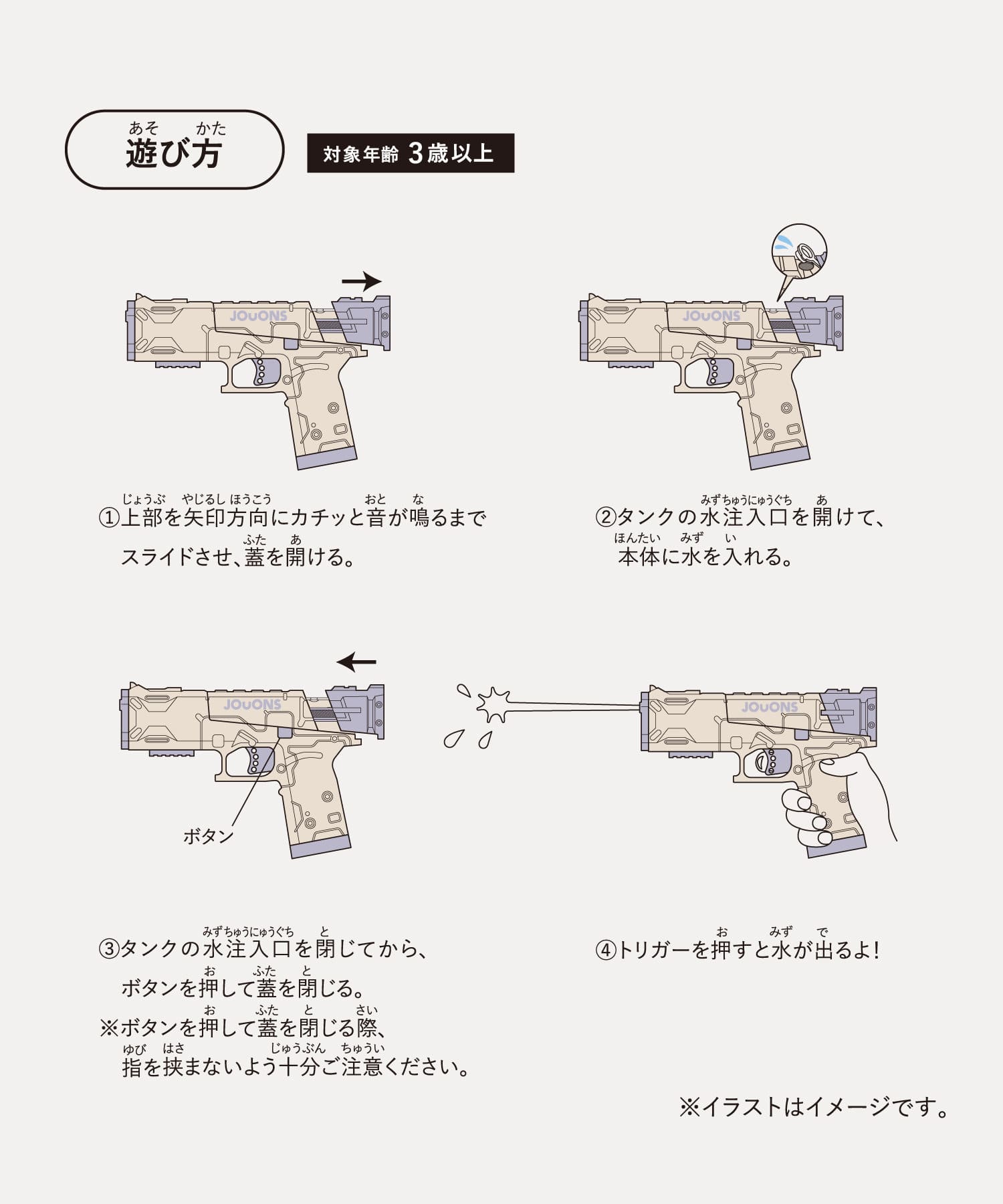 3COINSよりリボルバーやハンドガンの形をした水鉄砲が登場! ハンドルで押し出すタイプの水鉄砲も同時発売(9/38)