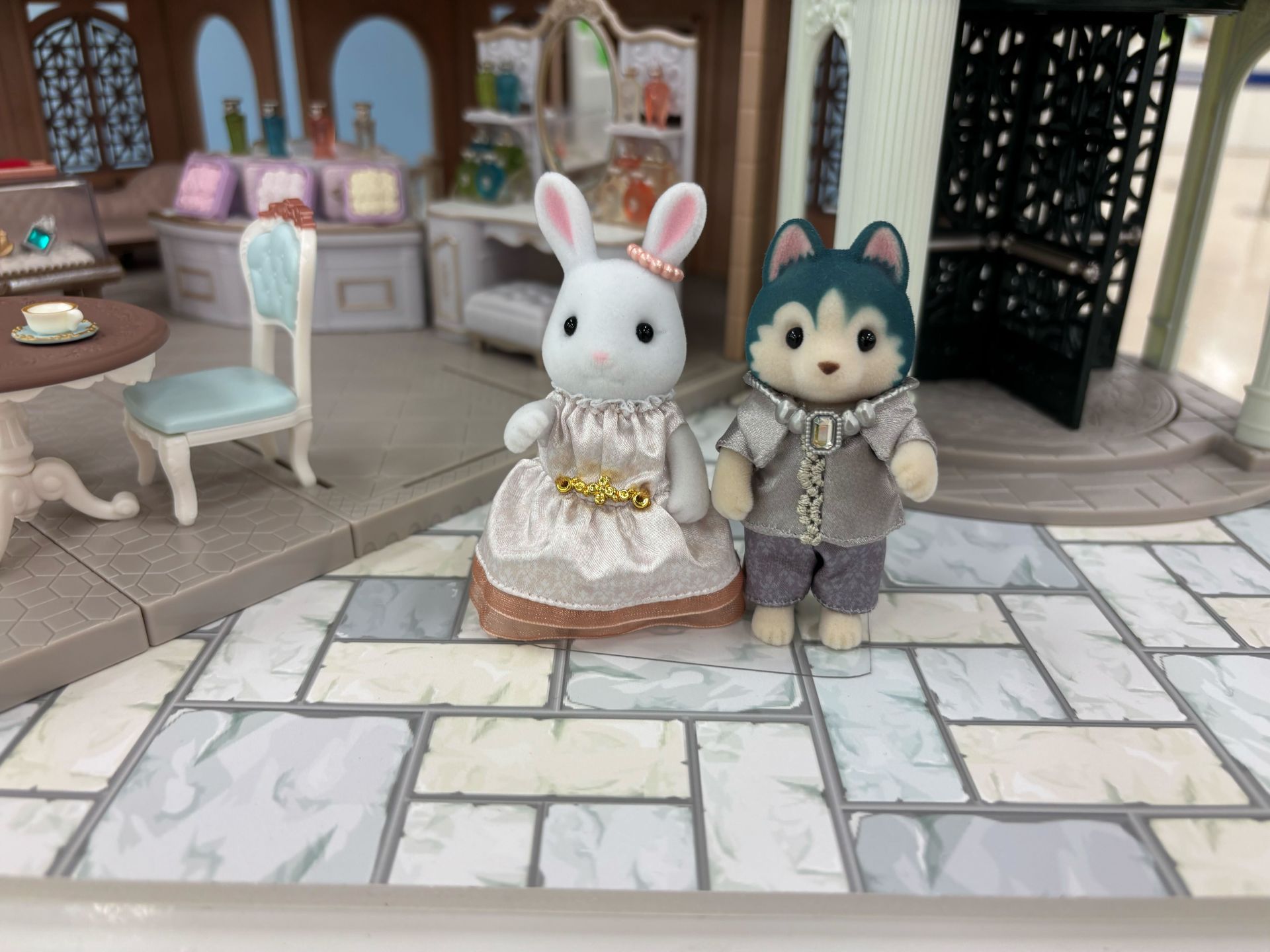 シルバニアファミリー展限定商品「ラグジュアリードレスペアセット-ショコラウサギ&みるく」が4月25日より販売