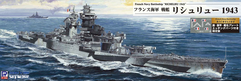 • 1/700 スカイウェーブシリーズ フランス海軍 戦艦 リシュリュー 1943 旗・旗竿・艦名プレートエッチングパーツ付き ピットロード