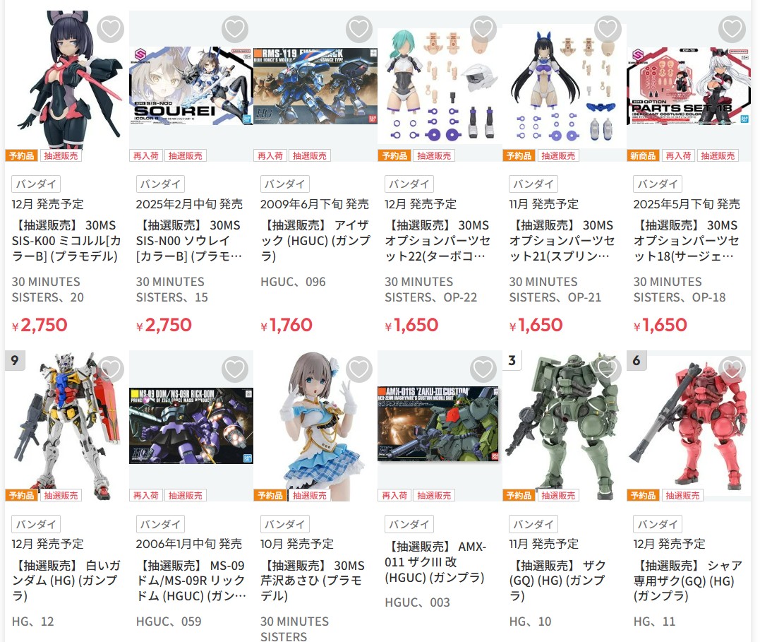 DMM通販にてガンプラや30MSなどBANDAI SPIRITSプラモデル再販分の抽選販売が6月16日14時より実施決定!