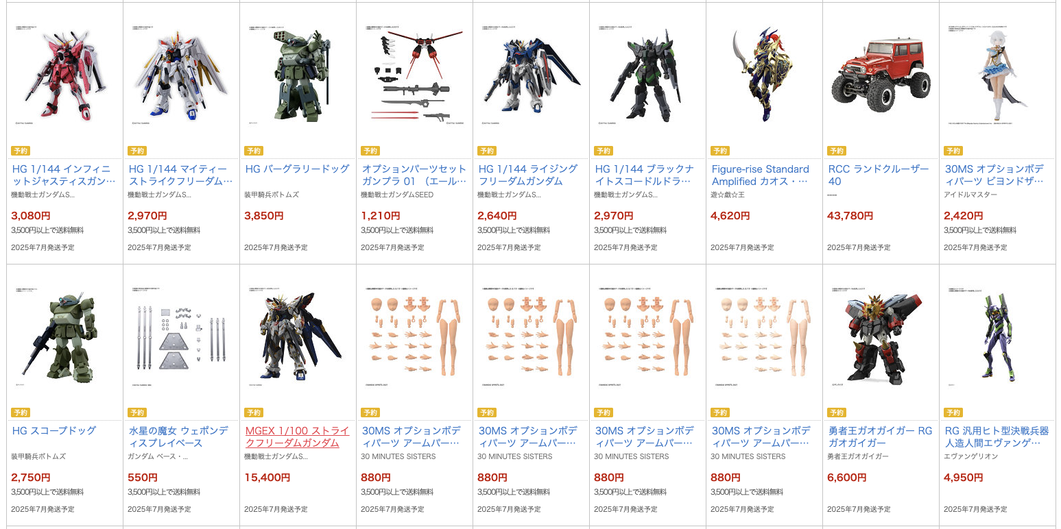 ホビーサーチ、ガンプラ「HG 1/144 赤いガンダム」などBANDAI SPIRITSプラモデルの抽選販売実施中!