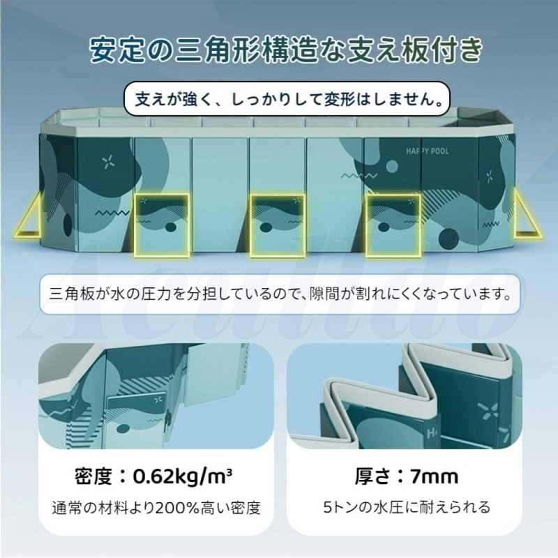 • Aculldo プール 空気入れ不要 折りたたみ式 ビニールプール 簡易プール ペットプール レジャープール ファミリープール ボールハウス 犬猫 お風呂用 家庭用 子供用 収納便利 水遊び 芝生遊び 砂場 猛暑対策 (3.0m)