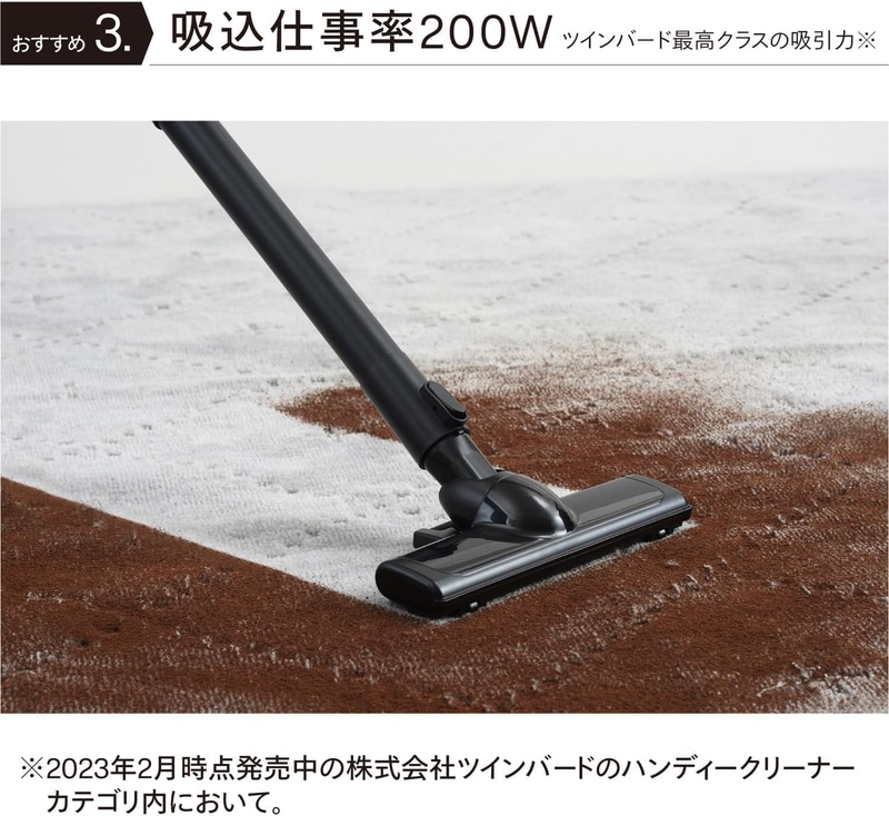 • TWINBIRD(ツインバード) 掃除機 コード式 ハンディクリーナー スティック サイクロン式 コンパクト 2WAY 軽量 ブラック HC-5248B