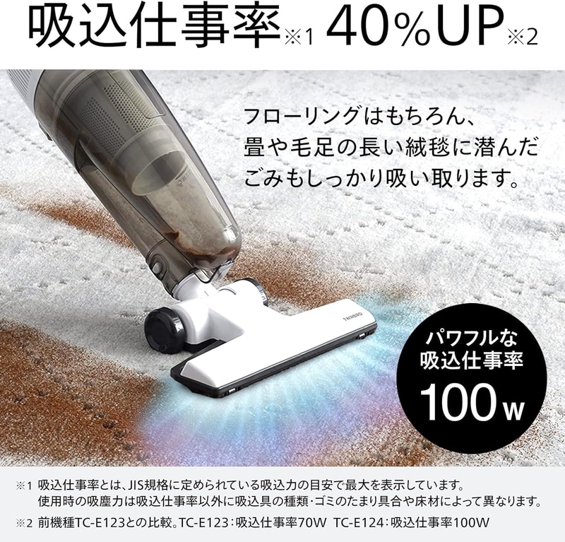 • TWINBIRD(ツインバード) 掃除機 コード式 スティック サイクロン式 自立可能 軽量 パワフル吸引 2WAY 新生活 スペシャルホワイト 白 TC-E124SPW