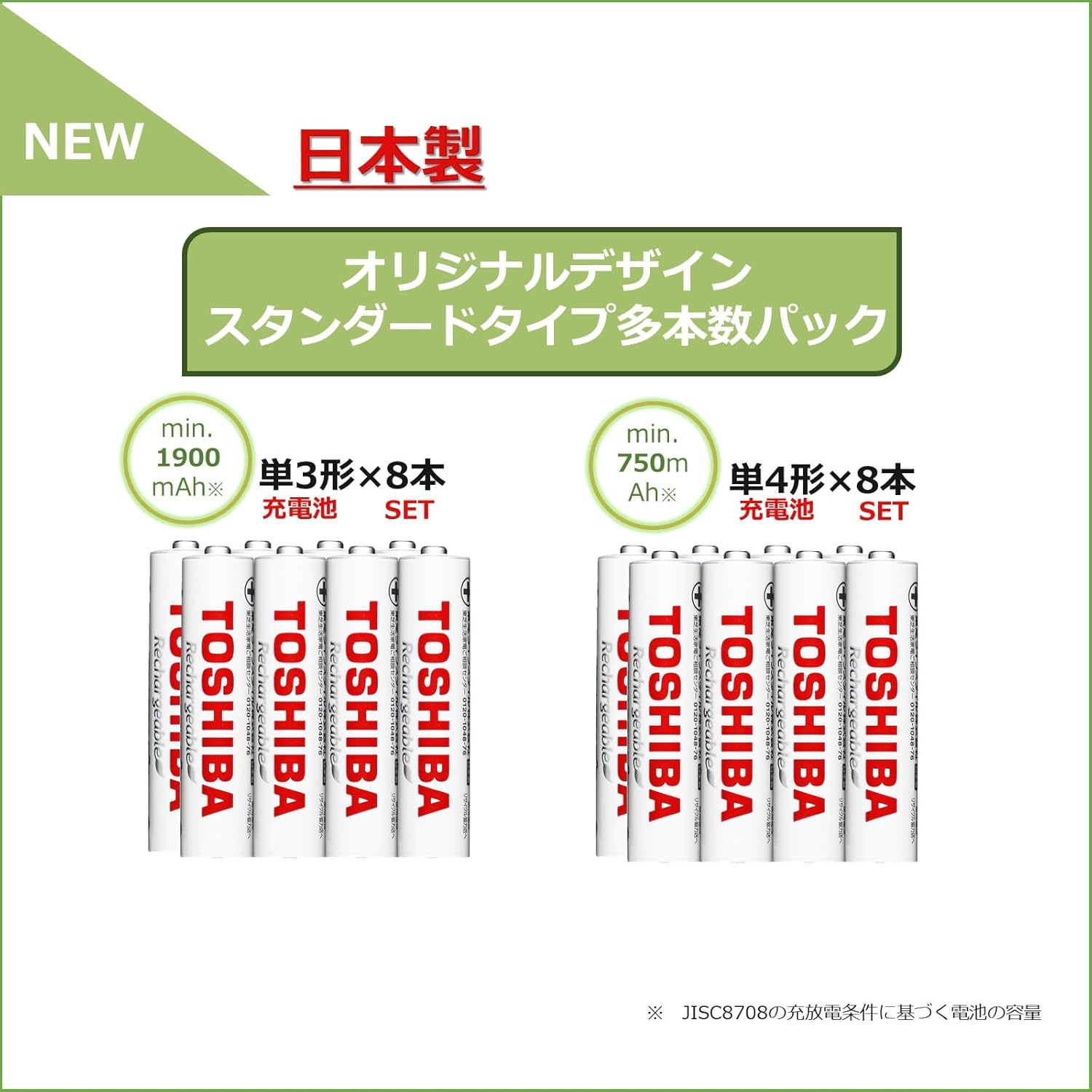 • 東芝 充電式ニッケル水素充電池 スタンダードモデル 単4形(8本入り) TNH-4ME(WB) 8P 日本製