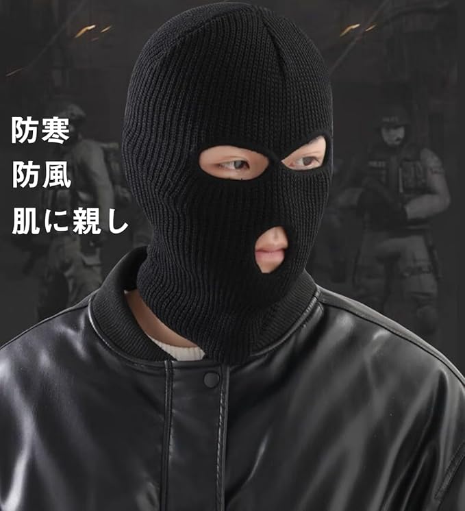 • [Trifong] 目出し帽 防寒 黒 バラクラバ 冬用 息苦しくない 軽量 覆面 サバゲー 全頭マスク フェイスマスク 防風 バイク 3ホール フェースマスク 帽子 自転車 スキー メンズ