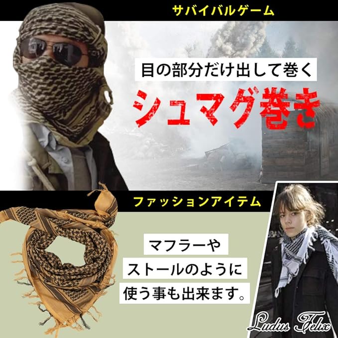 • [Ludus Felix] アフガンストール シュマグ ストール スカーフ ミリタリー サバゲー装備 大判 Cotton 100% (キャメル)
