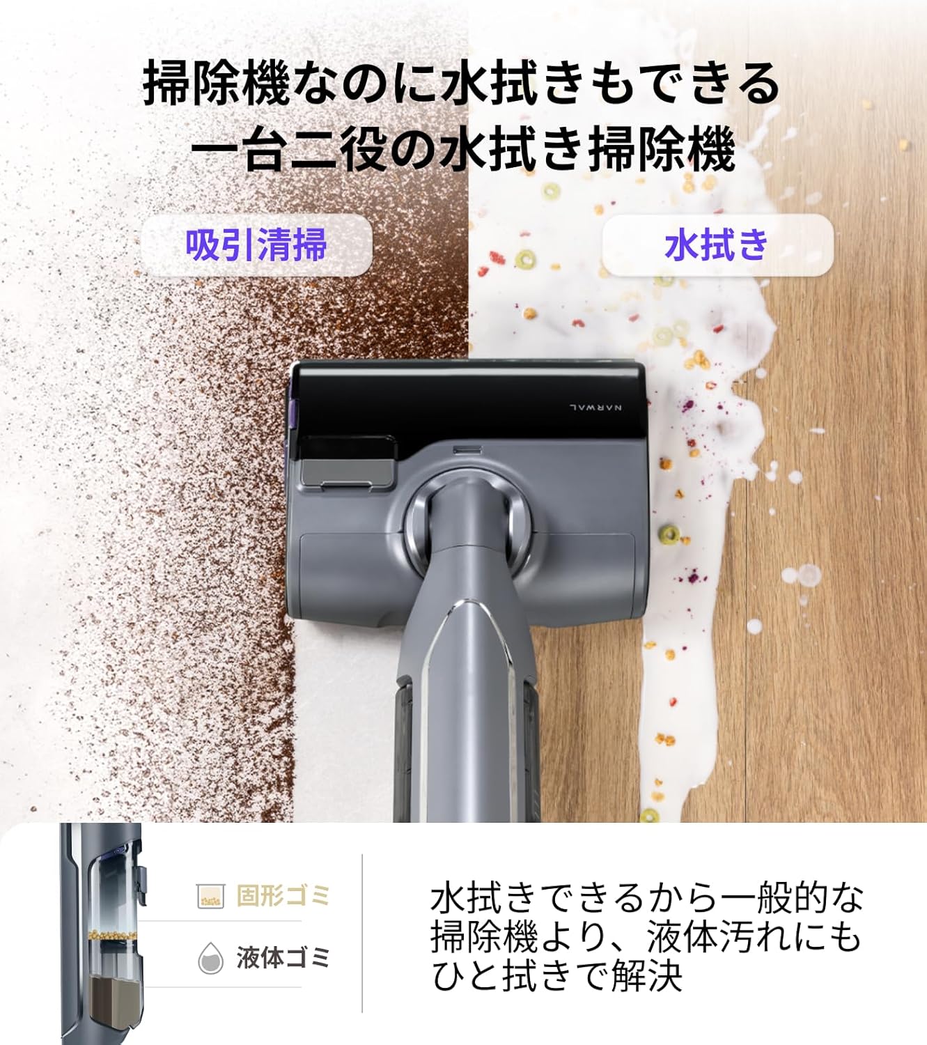 • Narwal(ナーワル) S20 Pro コードレス水拭き掃除機 20,000Pa強力吸引 モップ自動洗浄機能付き 乾湿両用 家具の下も清掃可能 フローリング、タイル、石床専用 絡まりゼロブラシ搭載 子どもやペットのいるご家庭に最適 メンテナンスフリー