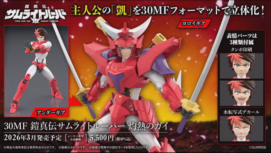 「30MF」シリーズに新作アニメ「鎧真伝サムライトルーパー」から「灼熱のガイ」がプラモ化決定! 2026年3月発売予定