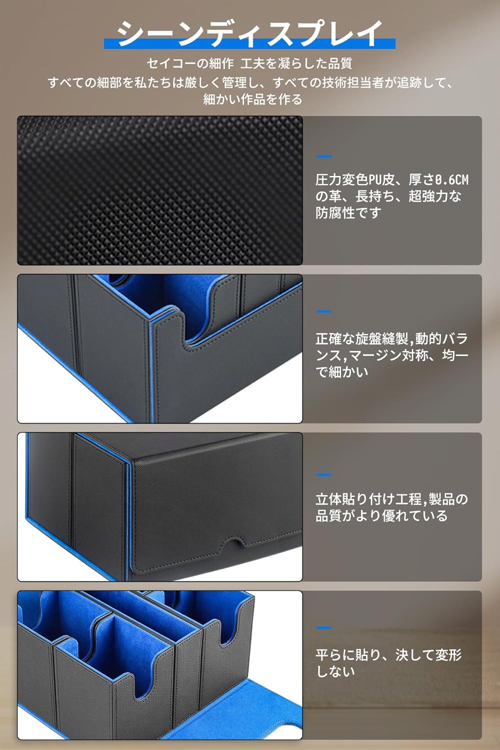 • HG CHASING TRIBE デッキケース トレカケース PU レザー カード2400枚収納 大容量 スリーブ対応 トレーディングカードケース (黒、ブルー, 2400枚のカード収納)