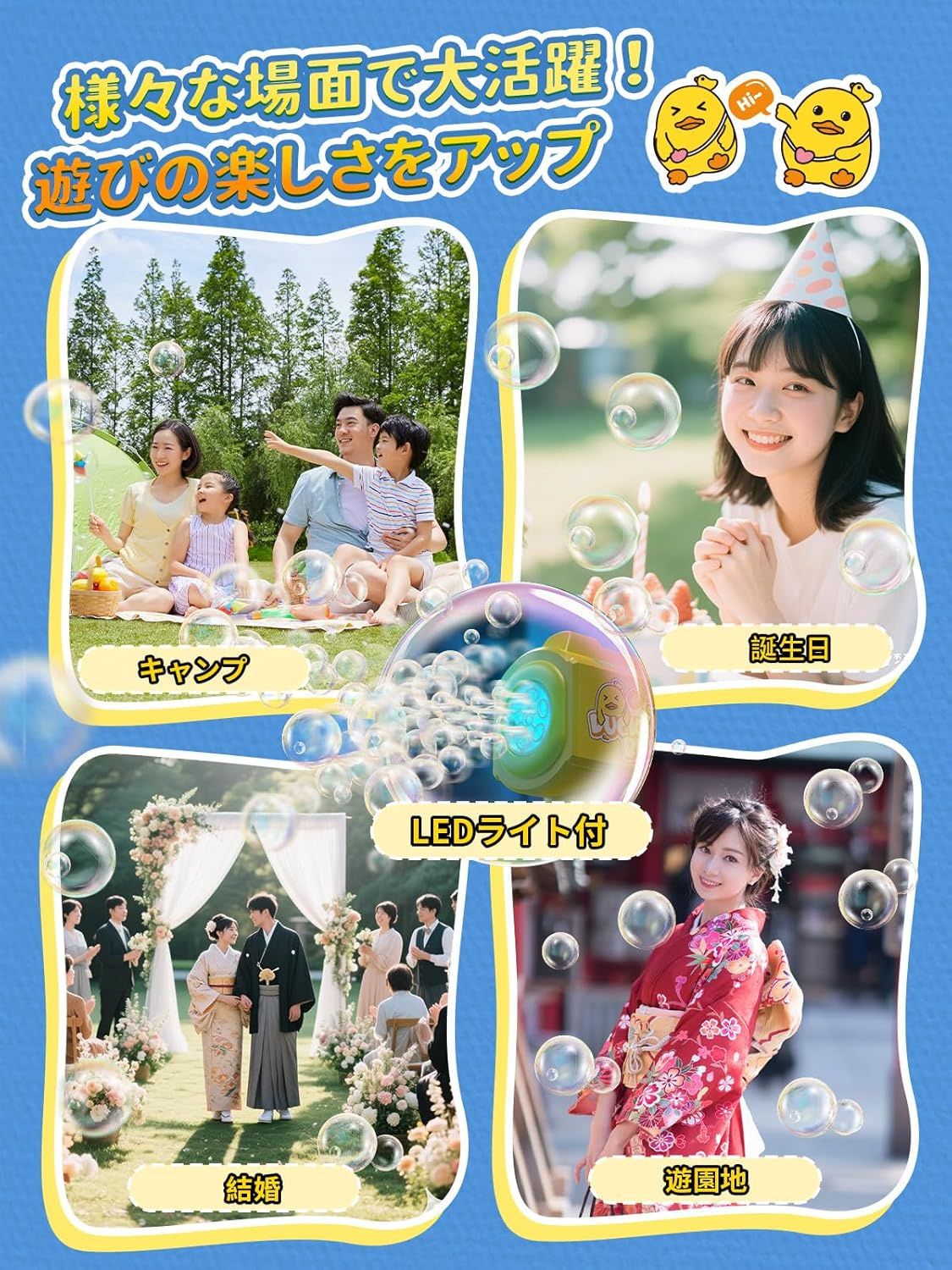 • Zaahir シャボン玉 電動 バブルガン 電池式 1分間6000個 360°液漏れ防止 かわいいアヒルデザイン 自動 長距離発射 軽量 LEDライト 子供 おもちゃ 誕生日プレゼント 結婚式 キャンプ 夏祭り 女の子 男の子 ボトル2本付 (黄色)