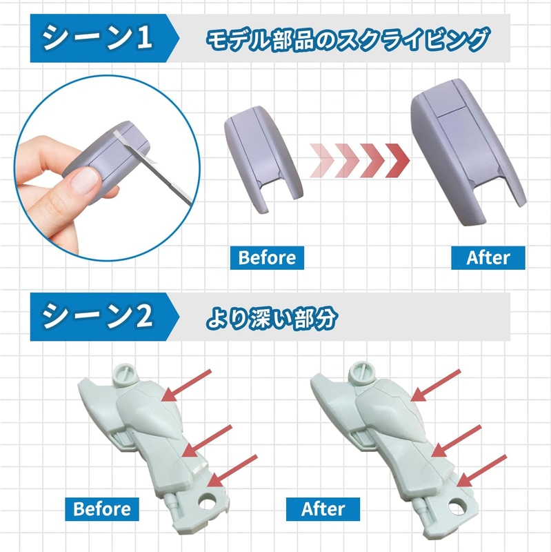 • VLOOKEE スジボリ テンプレート スジボリ ガイド 筋彫り ガンプラ スジボリガイド 3mmガイドテープ付き 筋彫り プラモデル 工具ディテール モールド加工 精密加工用(2種セット)