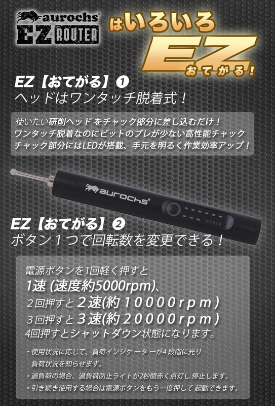 • aurochs 充電式 リューター ミニルーター プラモデル 工具 3段変速 照明付き TYPE-C 小型 コードレス 電動 やすり研磨 彫刻 穴あけ 切断 切削 ホビー 初心者用 (メタルブラック)
