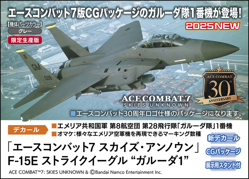 ハセガワ、プラモデル「『エースコンバット7 スカイズ・アンノウン』 F-15C イーグル “ガルム1”」本日出荷開始!