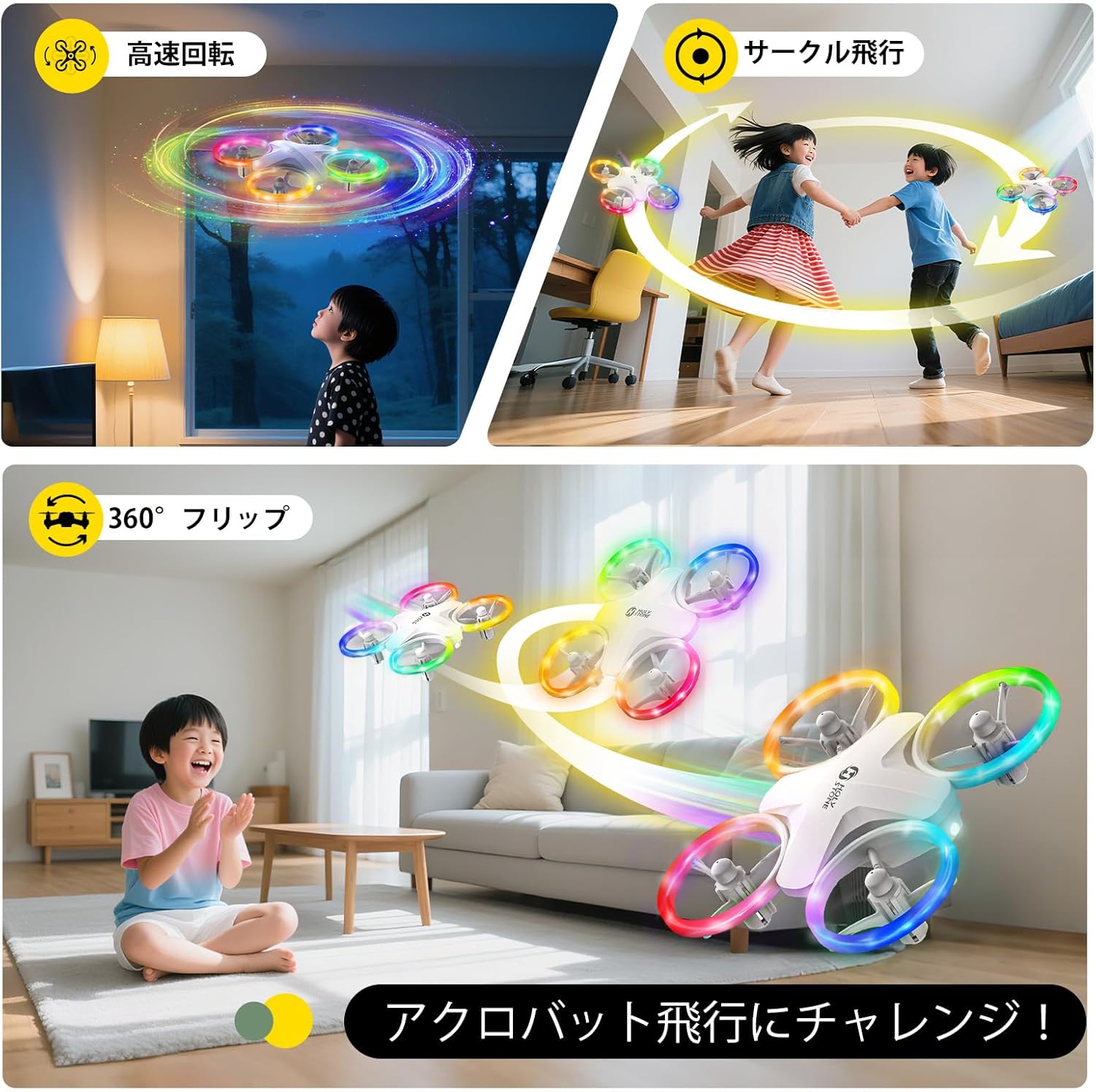 • Holy Stone ドローン 100g未満 子供向け 免許不要 小型ドローン おもちゃ 7色LEDライト 6種類の点灯モード バッテリー3個 21分飛行時間 スピード切替 サークル飛行 高速回転 室内ドローン HS180