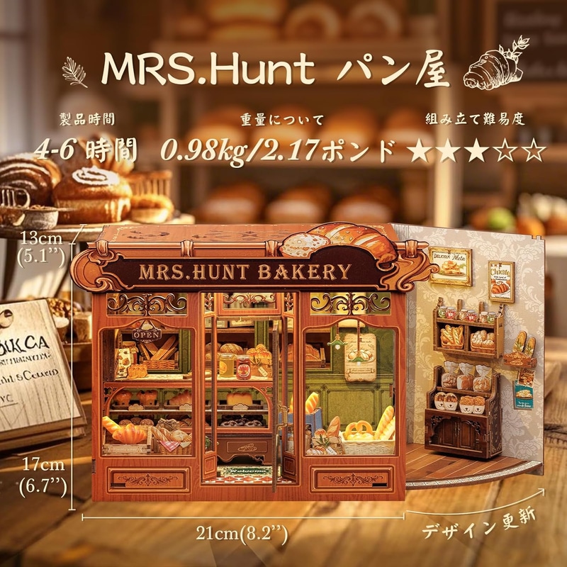 • CuteBee DIY ブックヌックキット ドールハウスキット3Dミニチュアハウスキット BookNook ウッドクラフトブックエンド装飾 LED付き ティーンエイジャーと大人向け プレゼントに最適 (MRS.HUNT パン屋)