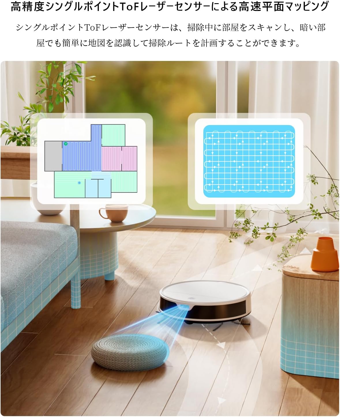 • OKP Life K5 Ultra ロボット掃除機 水拭き ToFレーザー測位 5500Pa超強力吸引 磁気吸引モップ 長時間駆動200分 アプリ/Alexa対応 自動充電 カーペット/畳/ペット毛対策 自動掃除機 静音 超薄型