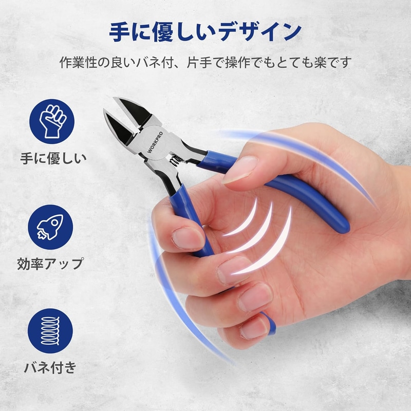 • WORKPRO ニッパー プラスチックニッパー 130mm ミニニッパー バネ付 小型ニッパー 精密ニッパー 斜めプライヤー ワイヤーニッパー 軟鉄 銅線切断に DIY手作り プラモデル 手工業職人用 模型専用 繊細な作業工具