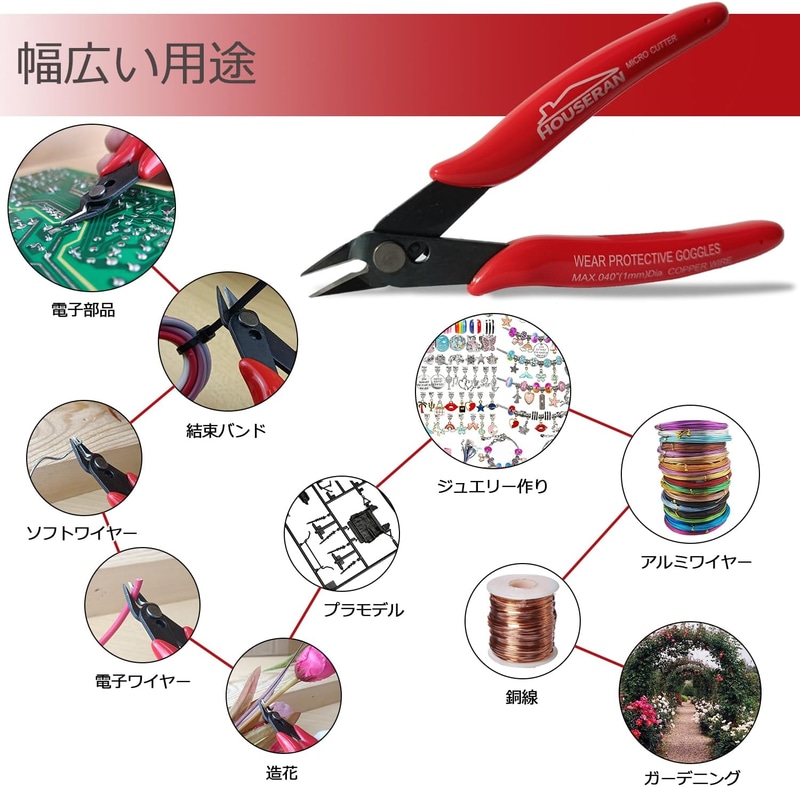 • HOUSERAN 精密ニッパー 小型 マイクロニッパー プラスチックにっぱー 薄刃 工具 プラモデル ミニ ワイヤーカッター 小型 DIY ジュエリー 5点セット