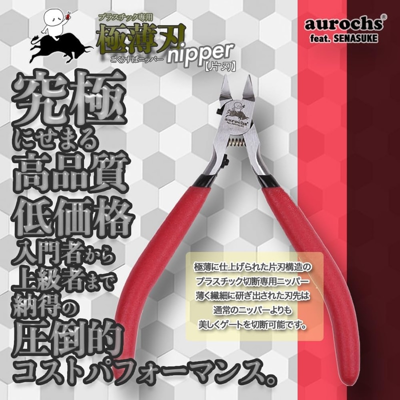 • aurochs 極薄刃 ニッパー 片刃 精密 プラスチック専用 工具 プラモデル 模型 ゲートカット せなすけコラボモデル (レッド&ブラック/右手用)
