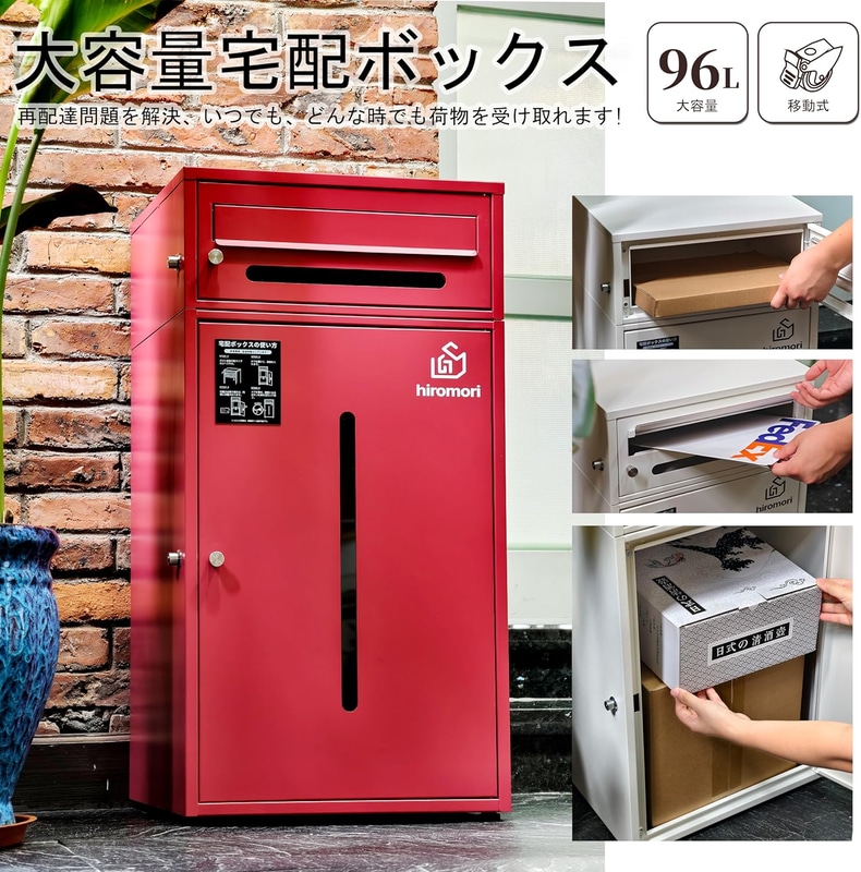 HIROMORI 宅配ボックス 屋外 宅配box 96L 大容量 ポスト一体型 二段式 置き配ボックス 郵便受け 防水防錆 大型 案内ステッカー付き 簡単設置 移動式 盗難防止 おしゃれ キャスタロック機能 戸建て用「ガンメタルグレー」HIROMORI 宅配ボックス 屋外 宅配box 96L 大容量 ポスト一体型 二段式 置き配ボックス 郵便受け 防水防錆 大型 案内ステッカー付き 簡単設置 移動式 盗難防止 おしゃれ キャスタロック機能 戸建て用「ブラック」HIROMORI 宅配ボックス 屋外 宅配box 96L 大容量 ポスト一体型 二段式 置き配ボックス 郵便受け 防水防錆 大型 案内ステッカー付き 簡単設置 移動式 盗難防止 おしゃれ キャスタロック機能 戸建て用「ライトブルー」HIROMORI 宅配ボックス 屋外 宅配box 96L 大容量 ポスト一体型 二段式 置き配ボックス 郵便受け 防水防錆 大型 案内ステッカー付き 簡単設置 移動式 盗難防止 おしゃれ キャスタロック機能 戸建て用「ボルドーレッド」HIROMORI 宅配ボックス 屋外 宅配box 96L 大容量 ポスト一体型 二段式 置き配ボックス 郵便受け 防水防錆 大型 案内ステッカー付き 簡単設置 移動式 盗難防止 おしゃれ キャスタロック機能 戸建て用「ホワイト」