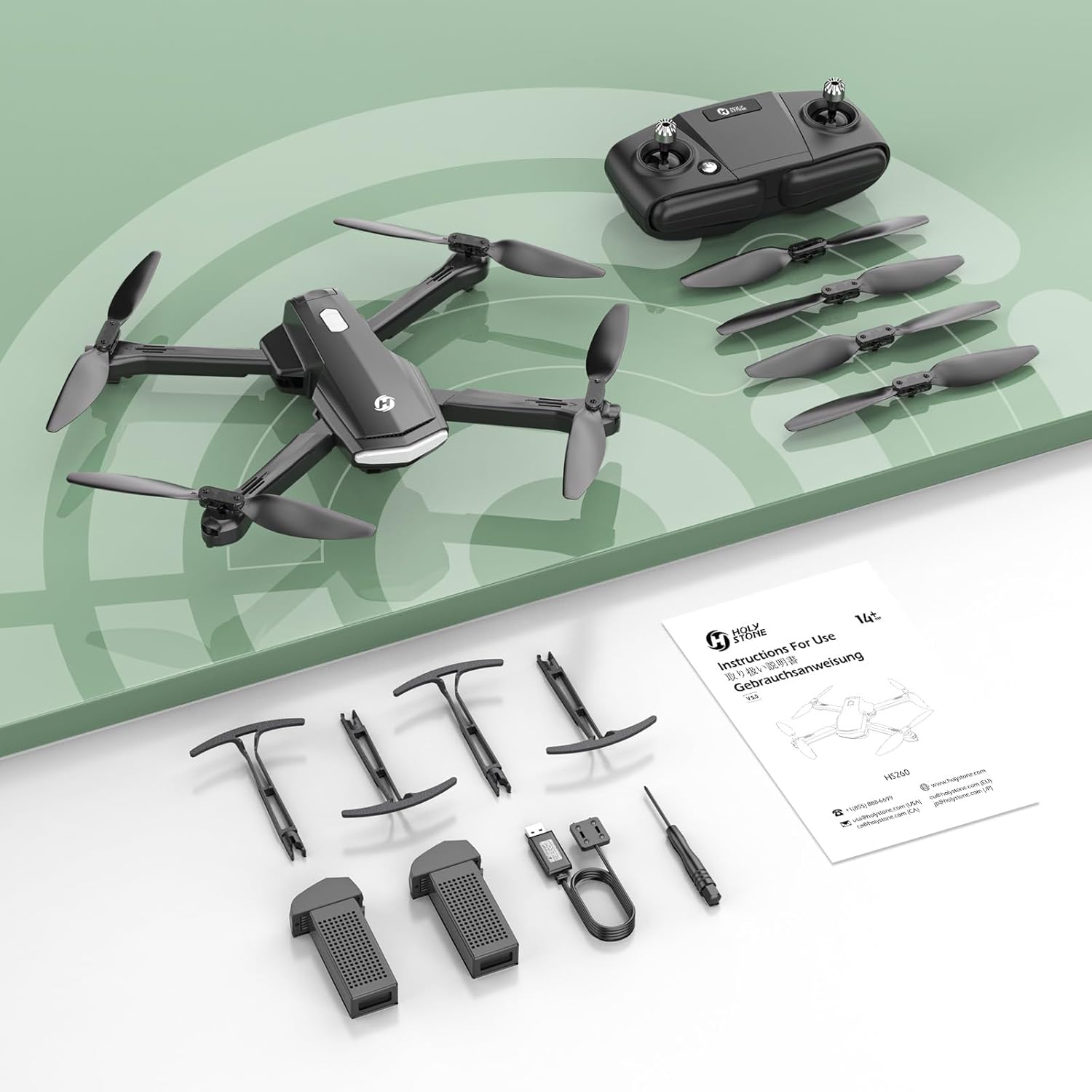 • Holy Stone ドローン カメラ付き 初心者向け 1080P HD 折り畳み式 飛行時間30分 バッテリー2個付き 収納ケース オプティカルフロー機能付き 軌跡飛行モード 安定飛行 高度維持 モード1/2自由転換 国内認証済み HS260