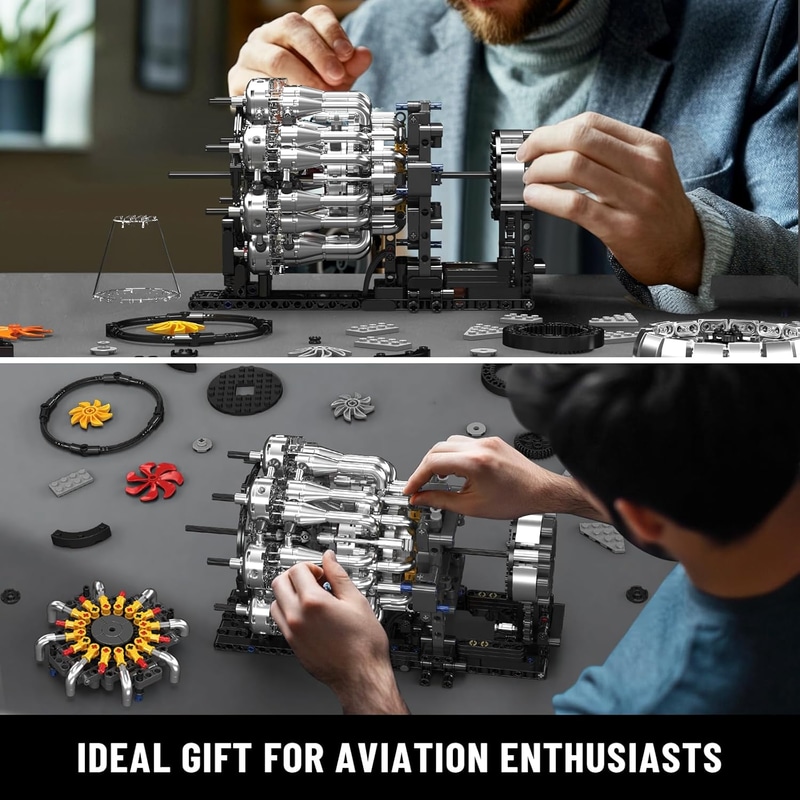 • Mould King 10216 航空機ターボジェットエンジン組み立てブロックキット、1214+ピース、8気筒エンジンモデルブロック付きモーター搭載、MOCエンジン組み立ておもちゃ、14歳以上の子供・大人のコレクター向け