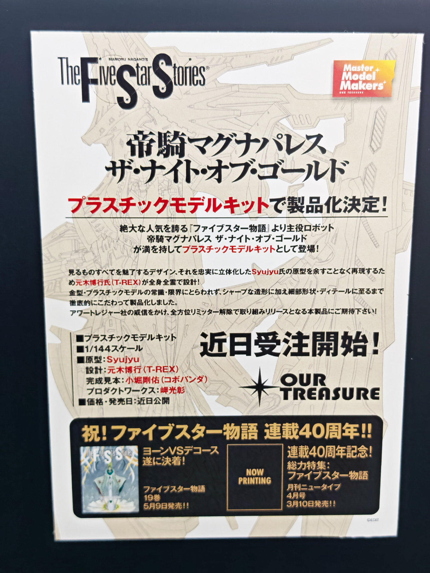 アワートレジャー、プラモデル「帝騎マグナパレス ザ・ナイト・オブ・ゴールド」のメーカー直販店での受注終了