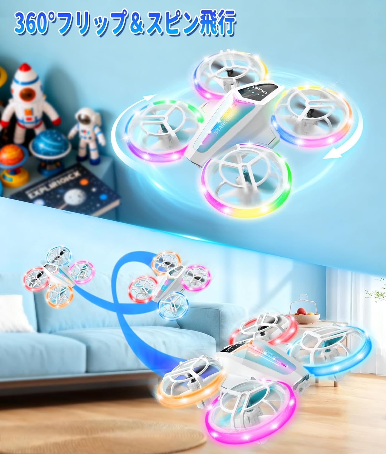 【Amazonセール】Caroxのトイドローンがセール価格に。カラフルなLEDライトを装備したモデルがお買い得(18/21)