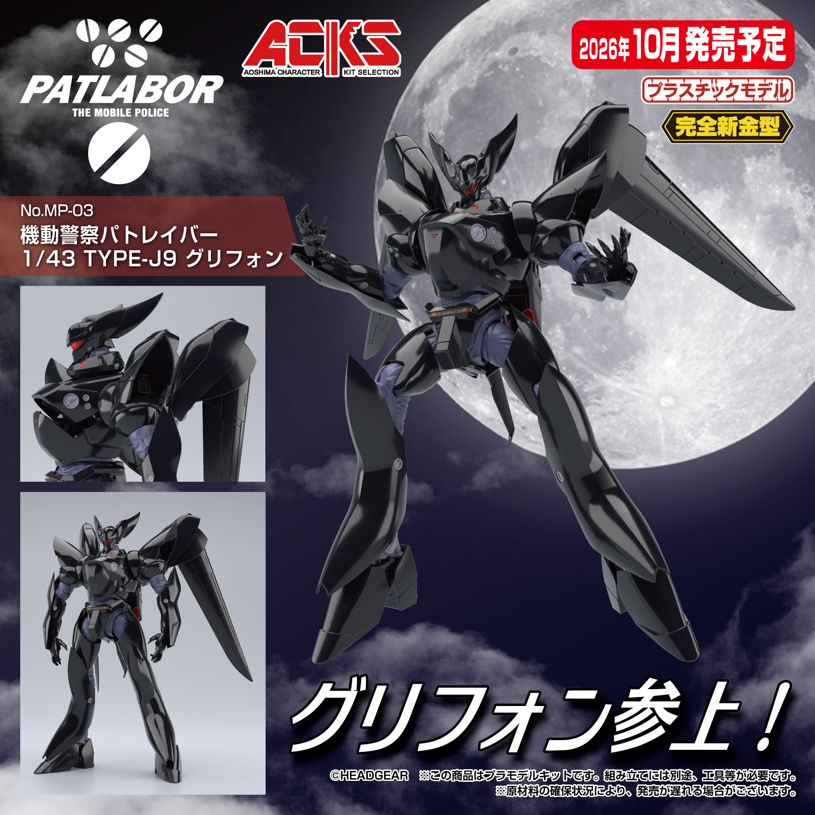 ぐりふぉん参上。アオシマ、プラモデル「機動警察パトレイバー 1/43 TYPE-J9 グリフォン」が4月27日に予約開始(1/19)
