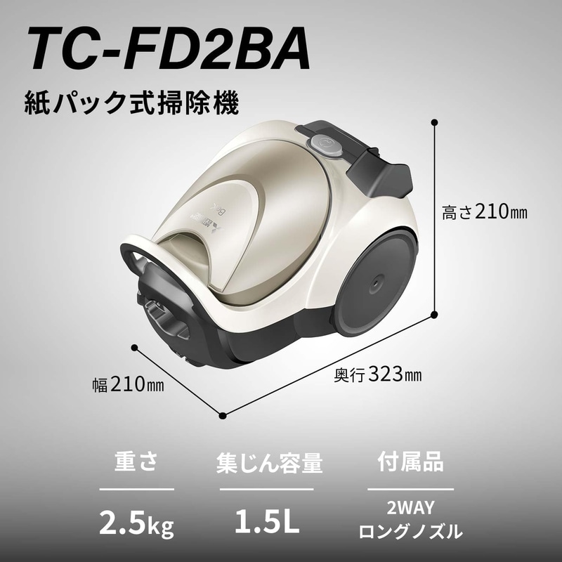 • 【Amazon.co.jp限定】 三菱電機 Mitsubishi 紙パック掃除機 TC-FD2BA-N 小型 軽量 自走式パワーブラシ からみにくい プレミアムゴールド